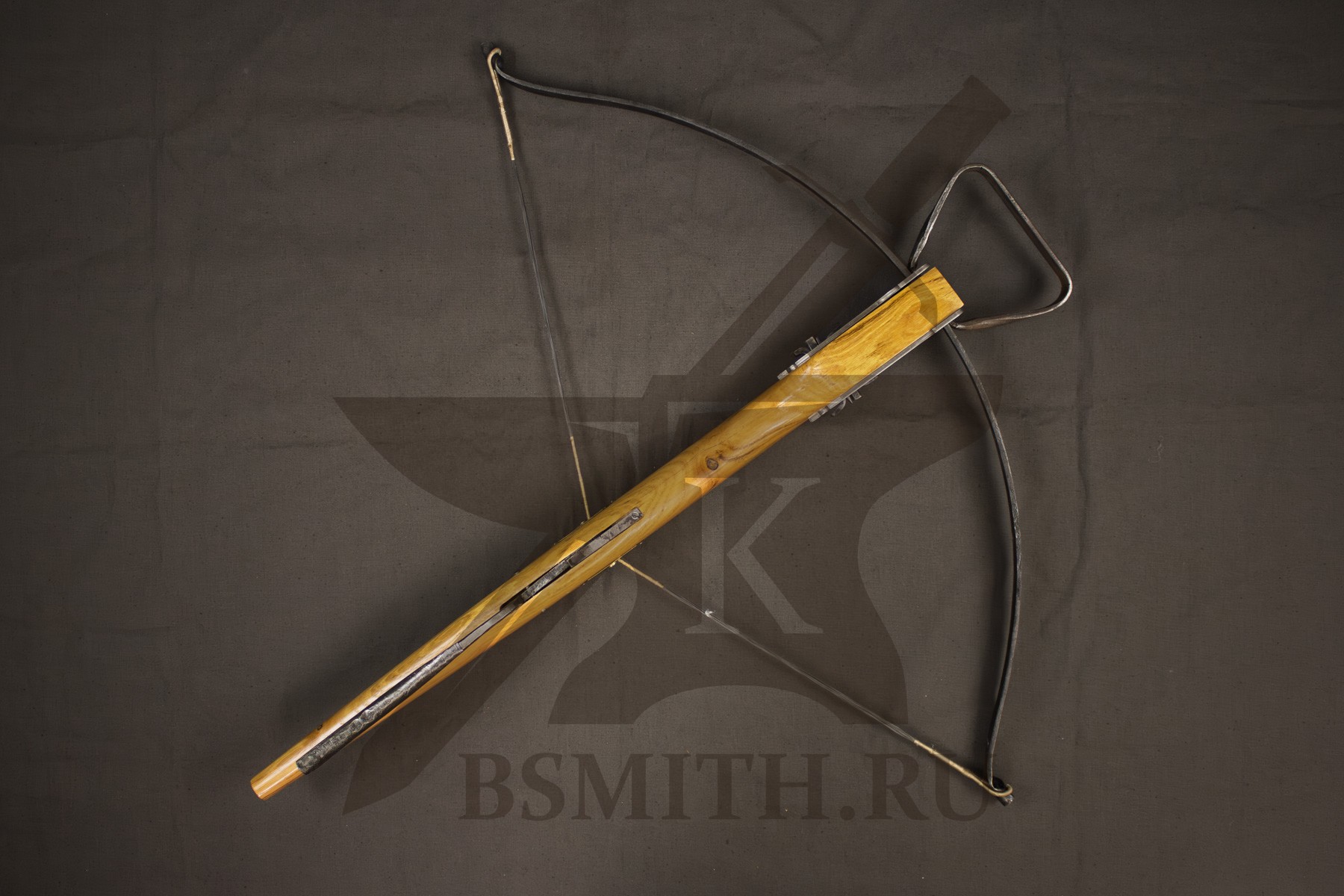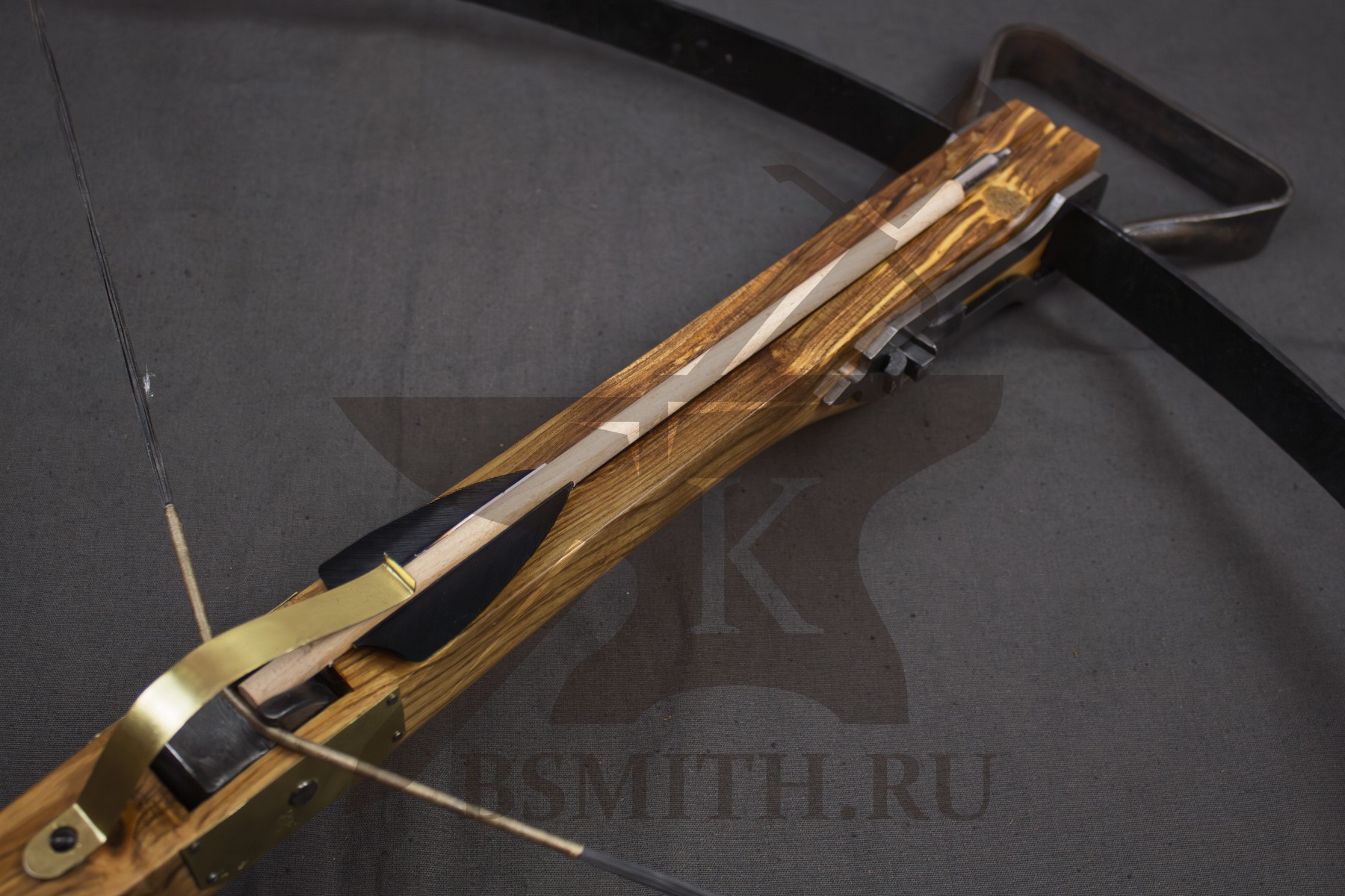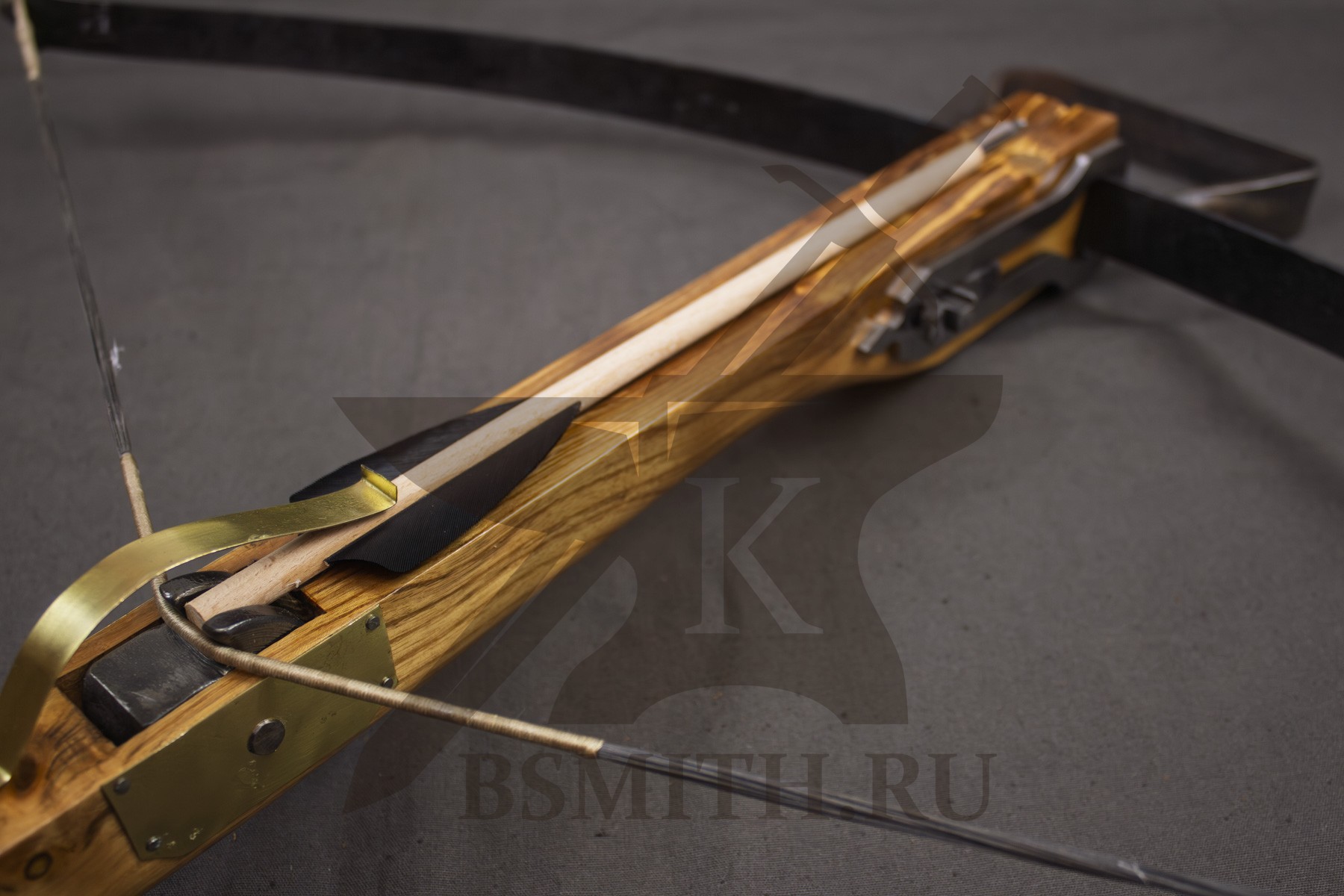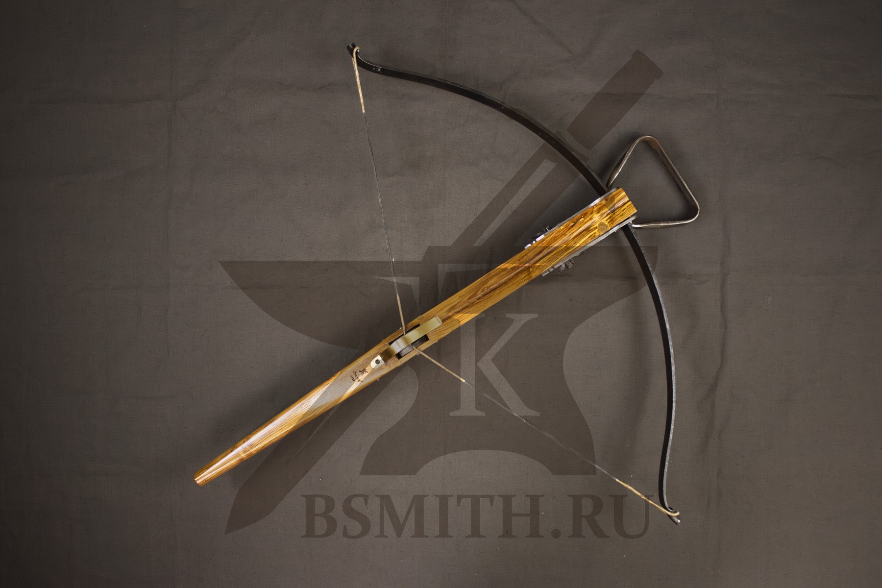 Ложе из твердых пород дерева (дуб, бук), пропитка маслом. Спусковой механизм - кованая сталь. Дуга стальная закаленная (сталь 65Г). Тетива - плетеная нить, стальной механизм крепления дуги.