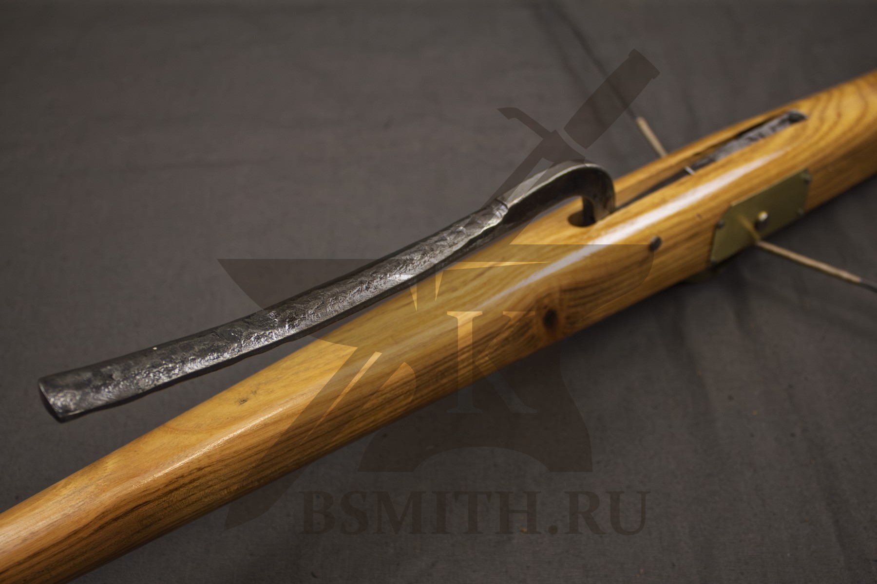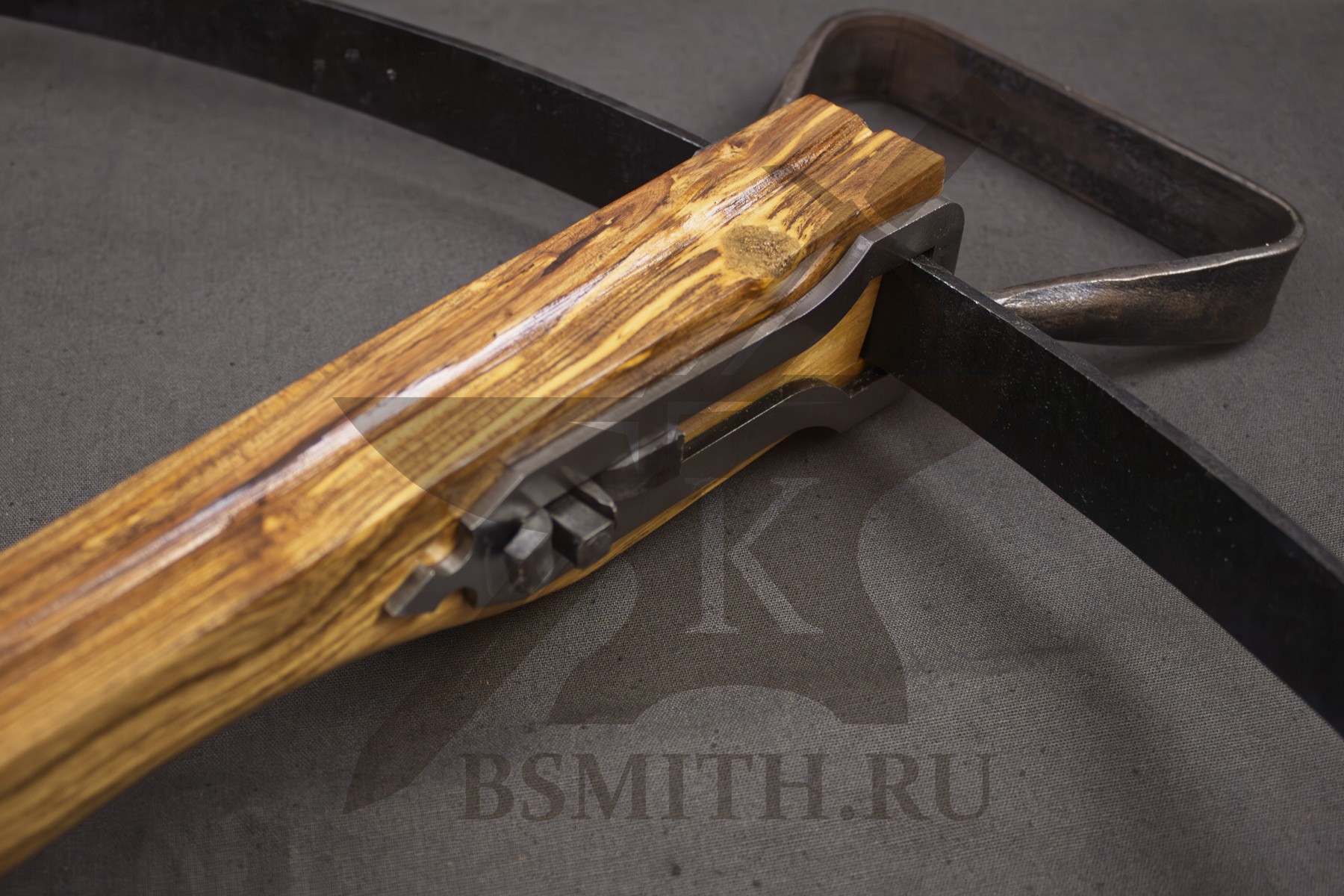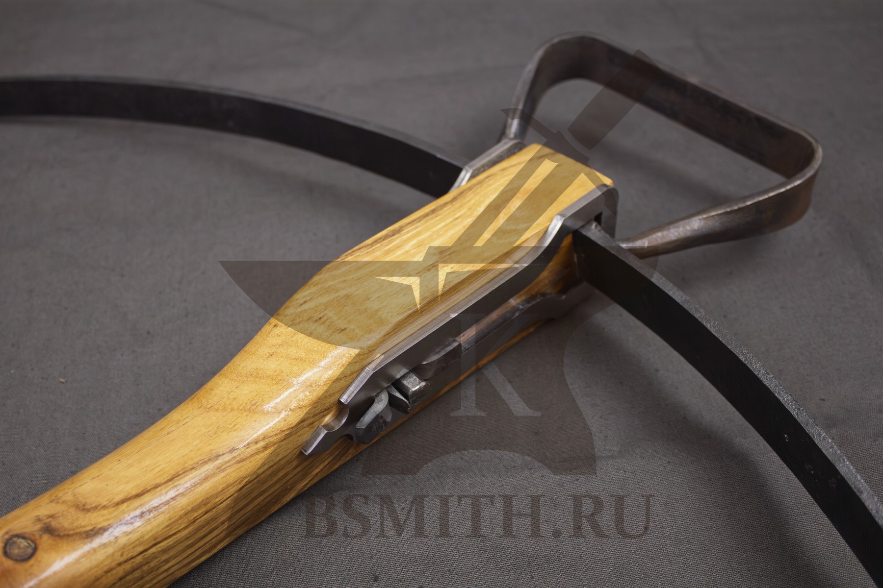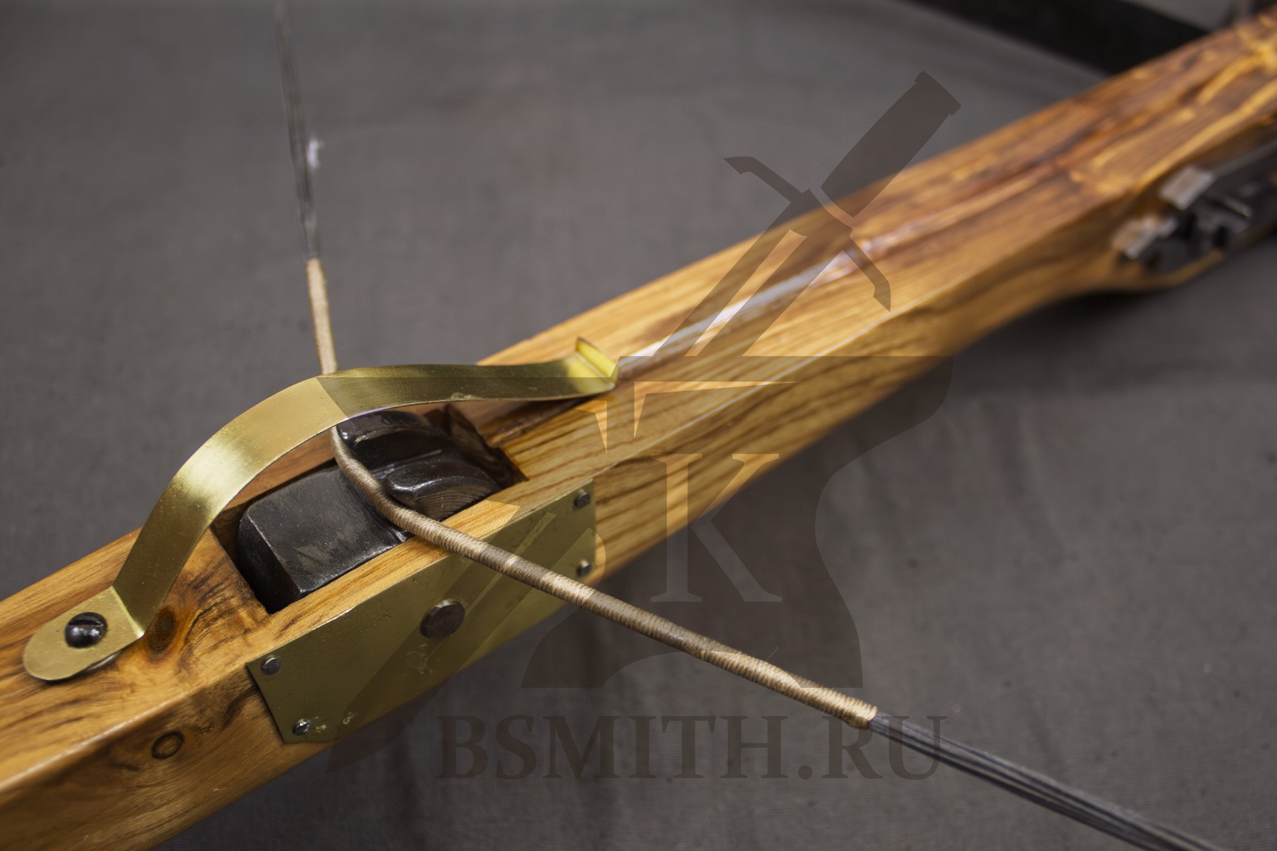 Ложе из твердых пород дерева (дуб, бук), пропитка маслом. Спусковой механизм - кованая сталь. Дуга стальная закаленная (сталь 65Г). Тетива - плетеная нить, стальной механизм крепления дуги.