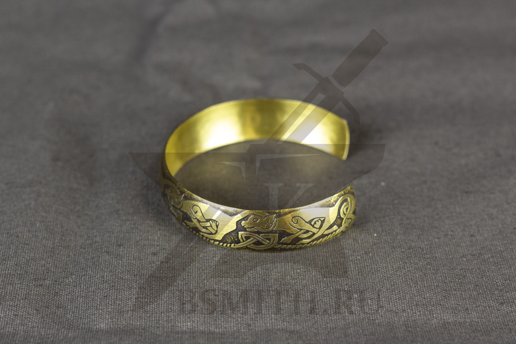 Браслет средний выпуклый, с орнаментом в кельтском стиле с бегущими собаками – символами верности, защиты и осторожности.