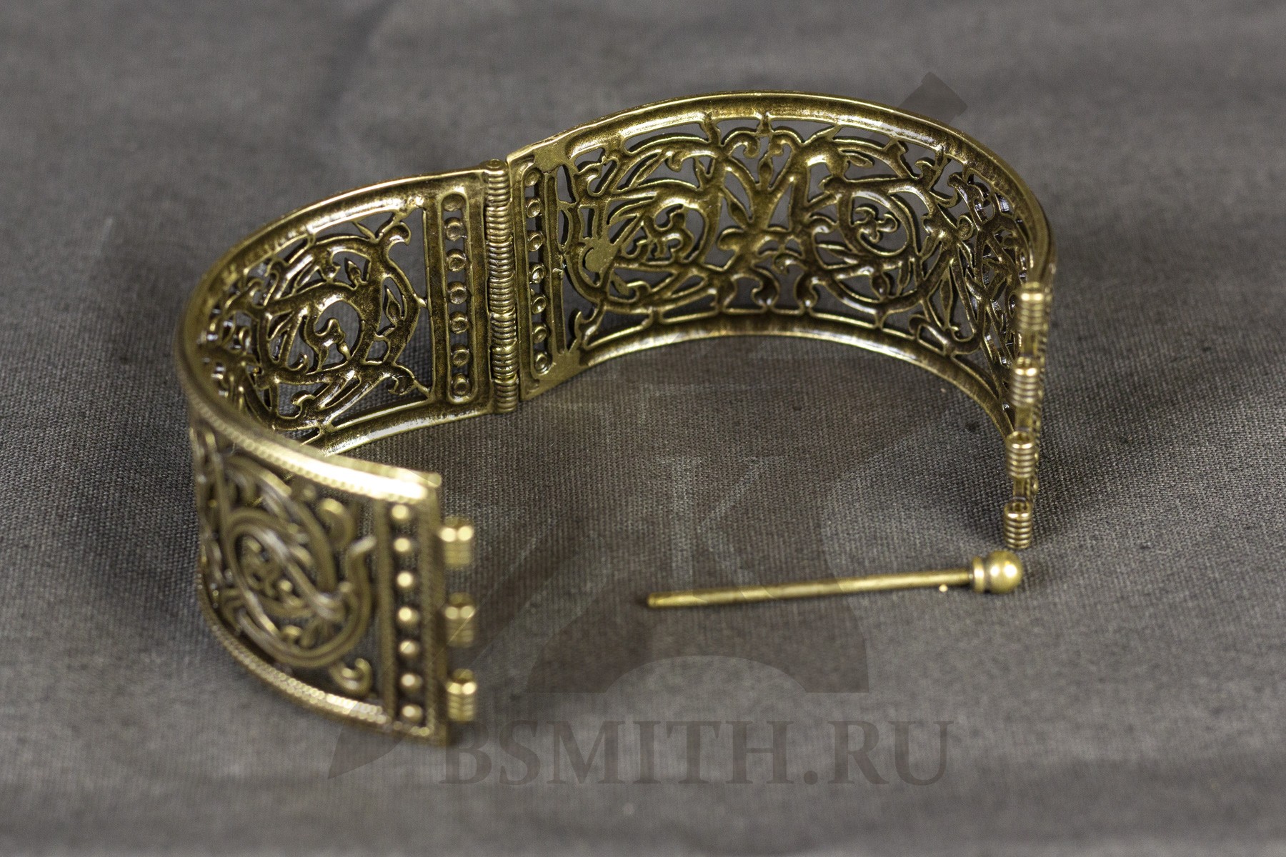 Браслет создан по мотивам браслетов-наручей Киевской Руси 12-13 веков. Это городское праздничное украшение княжеско-боярского сословия.
