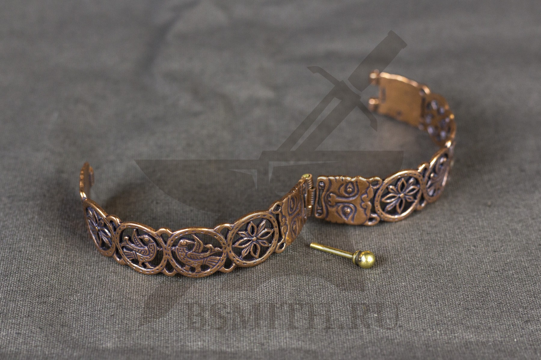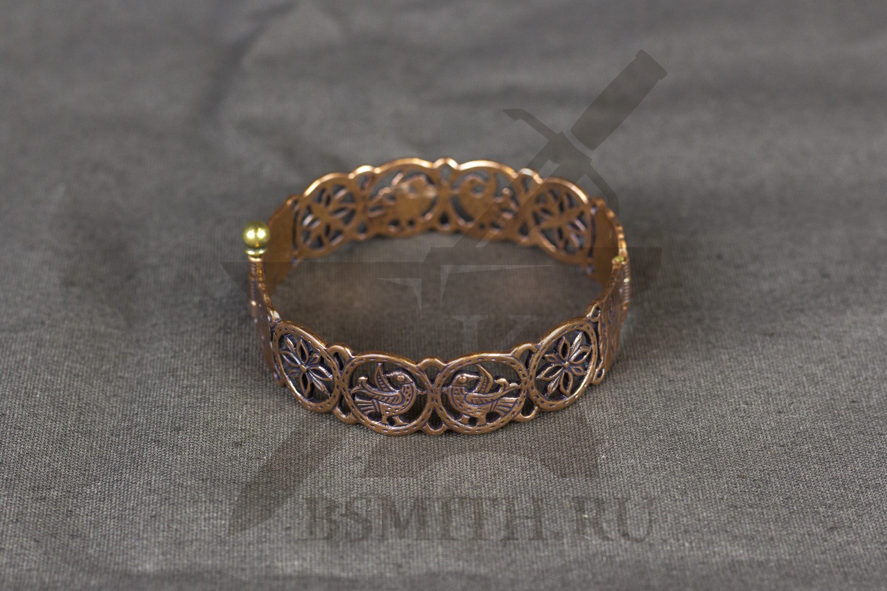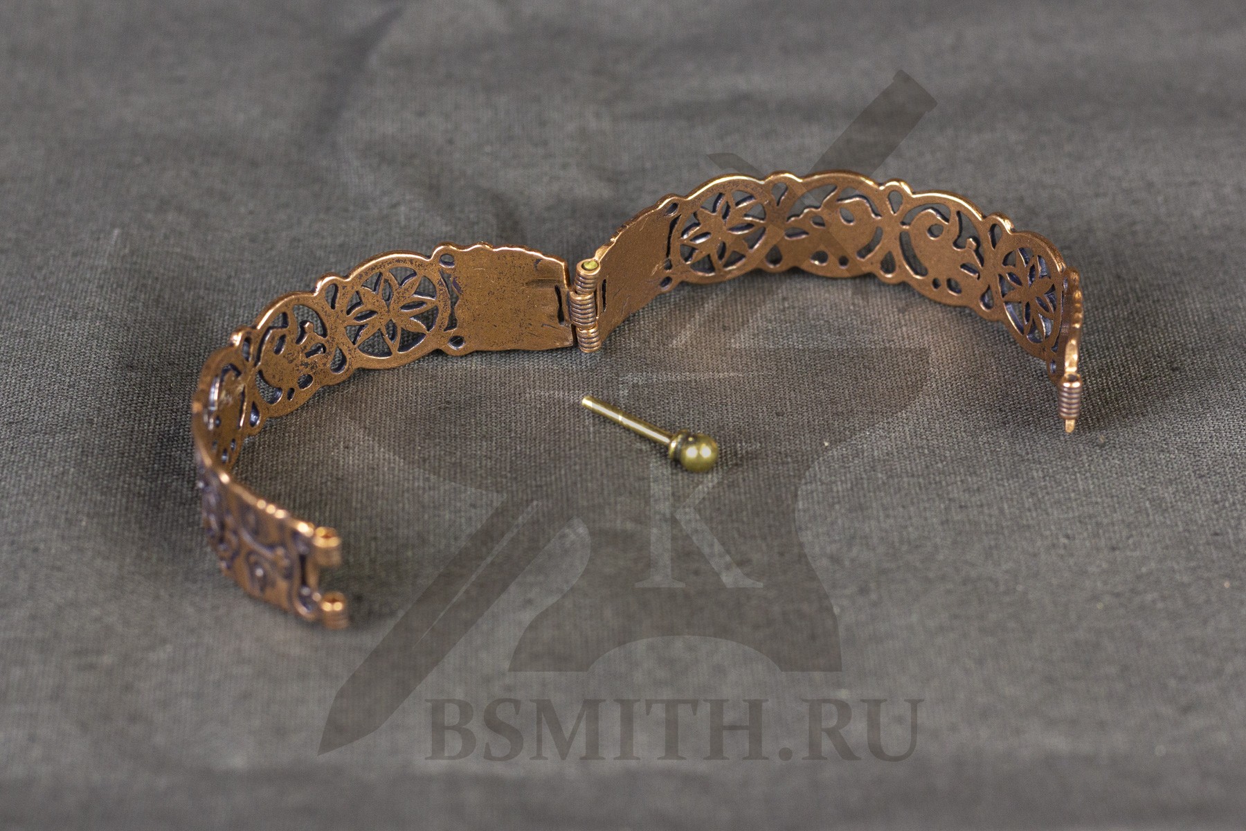 Браслет металлический прорезной. Орнамент создан по мотивам узоров створчатого серебряного браслета 12 века, из собрания Русского музея.