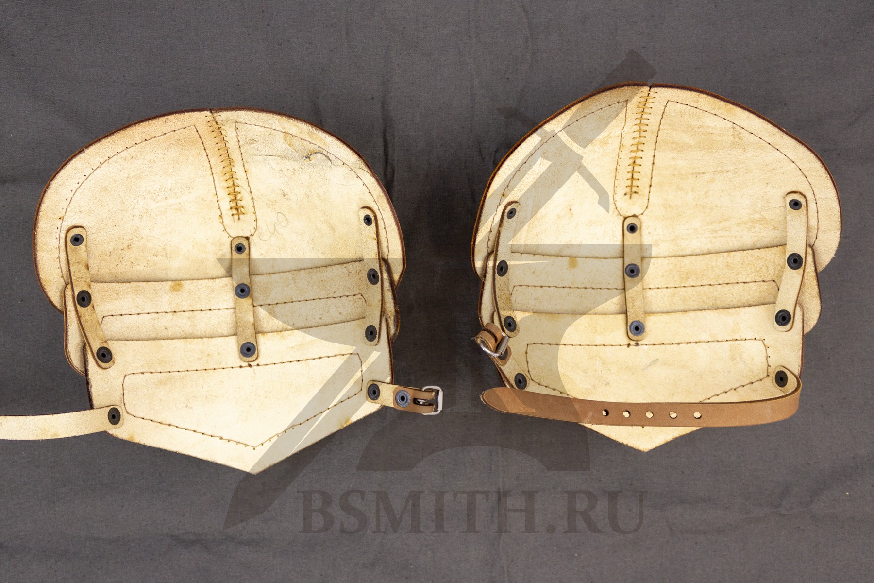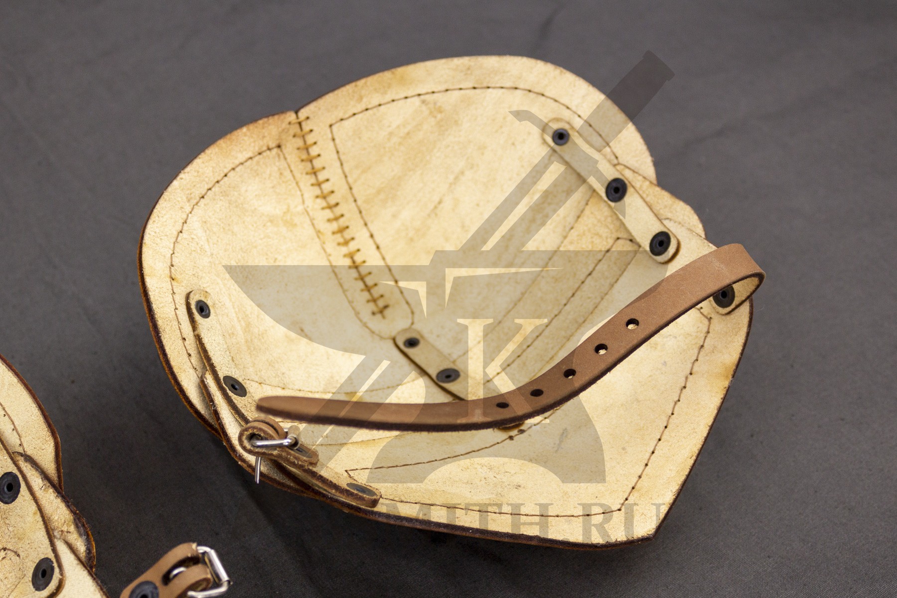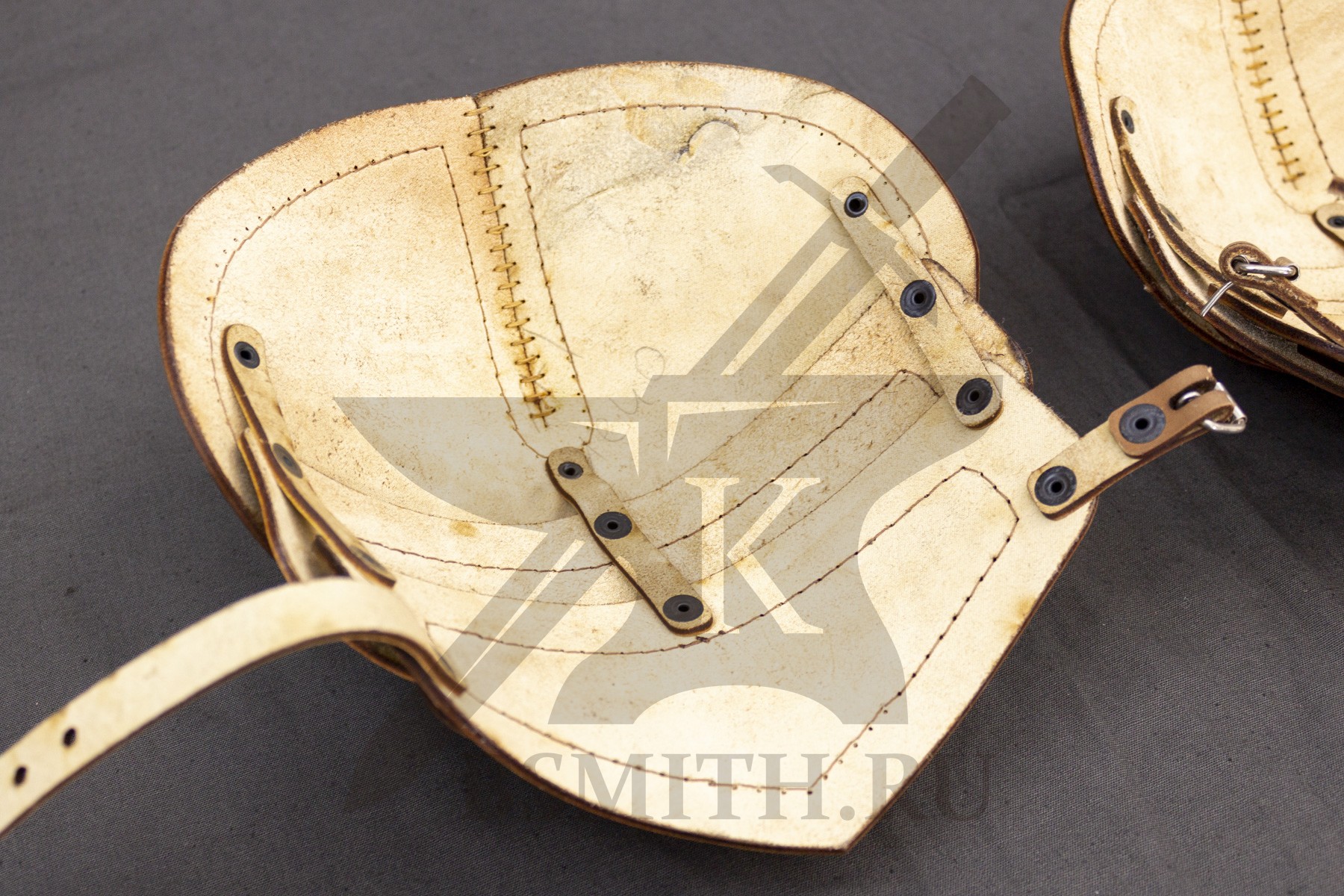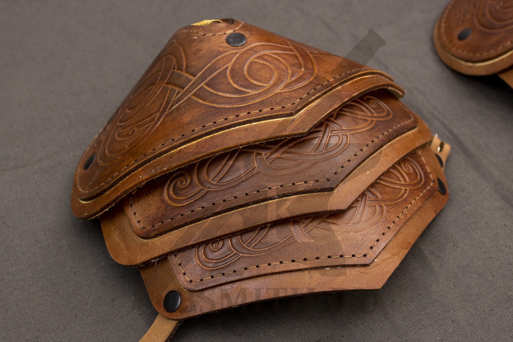 Наплечники из натуральной толстой кожи с тиснением и окраской, имеют орнамент, выполненный в скандинавском стиле.