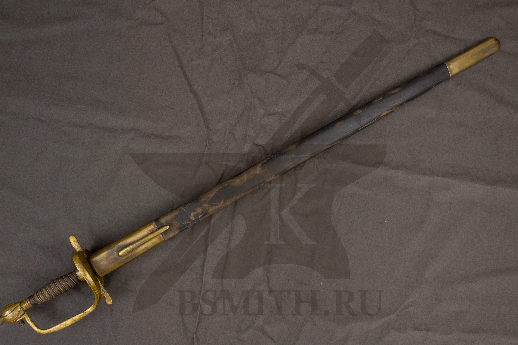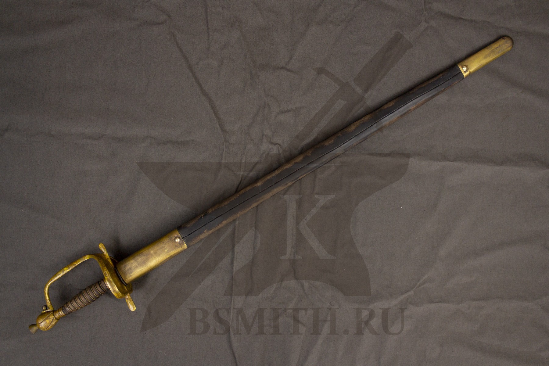 Ножны - дерево, обтянуты натуральной кожей, латунный гарнитур. Ножны входят в стоимость шпаги.