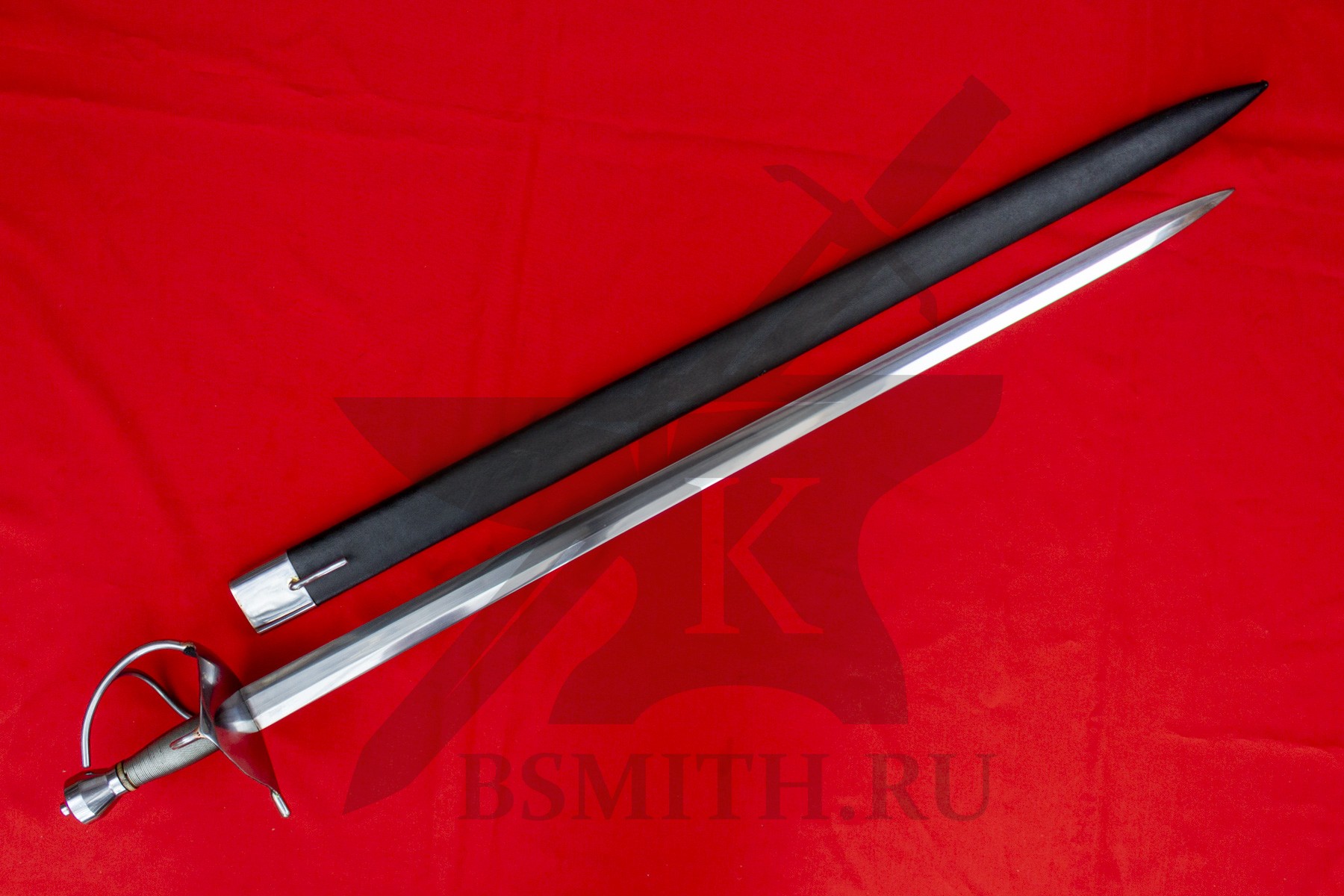 Ножны - дерево, обтянуты натуральной кожей, стальной гарнитур. Ножны входят в стоимость шпаги.