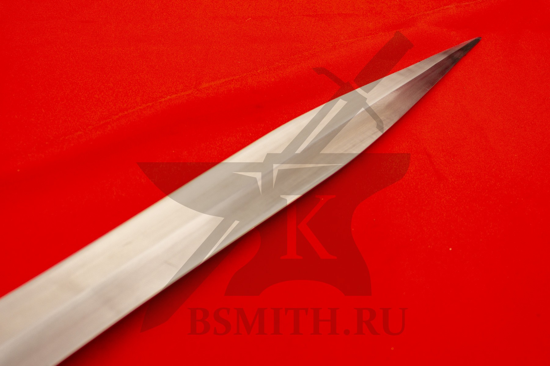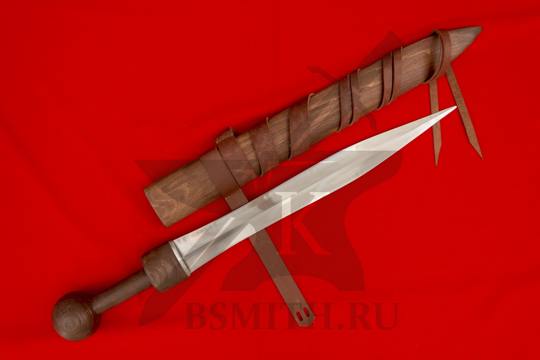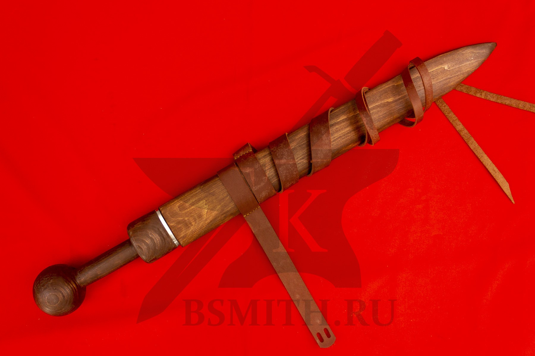 Классический деревянный эфес, собранных на хвостовике клинка. Клинок листовидный.