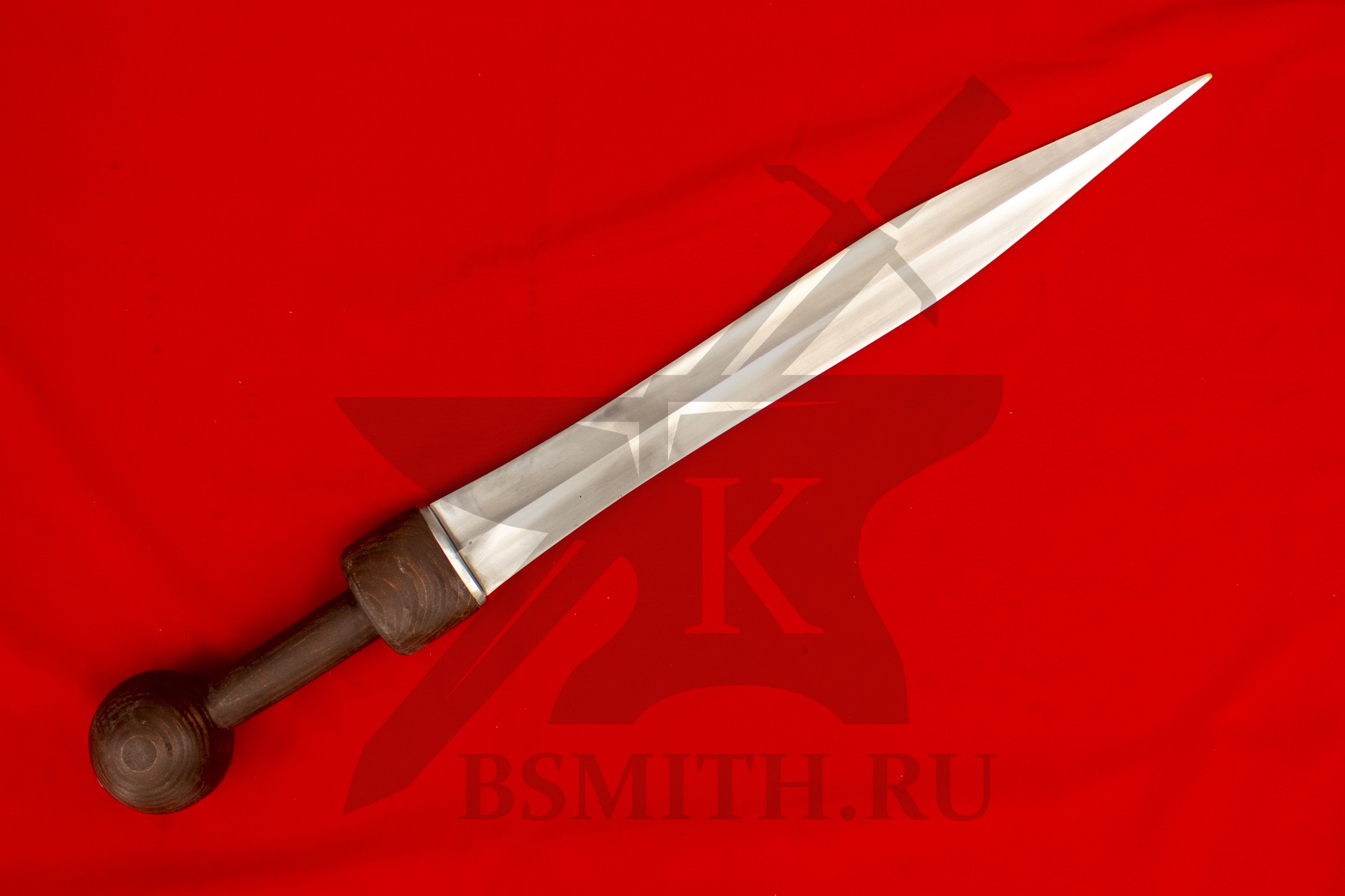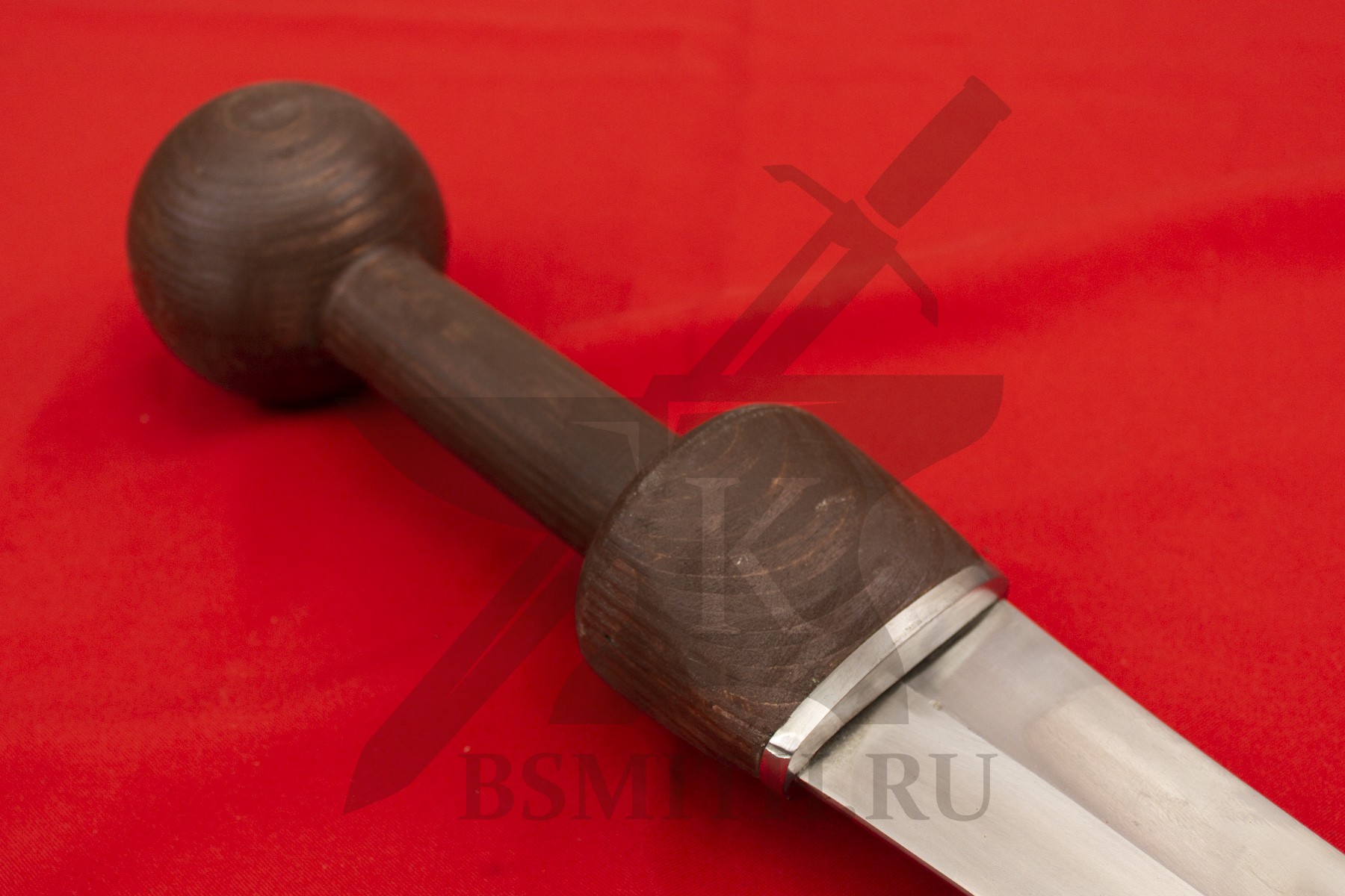 Клинок сделан из высокоуглеродистой легированной стали 65Г, с закалкой около 50 HRC, шлифовка. Клинок затуплен (отличие от холодного оружия), ослаблений никаких нет. Набор на эфес гладиуса (навершие, гарда, рукоять) деревянный.