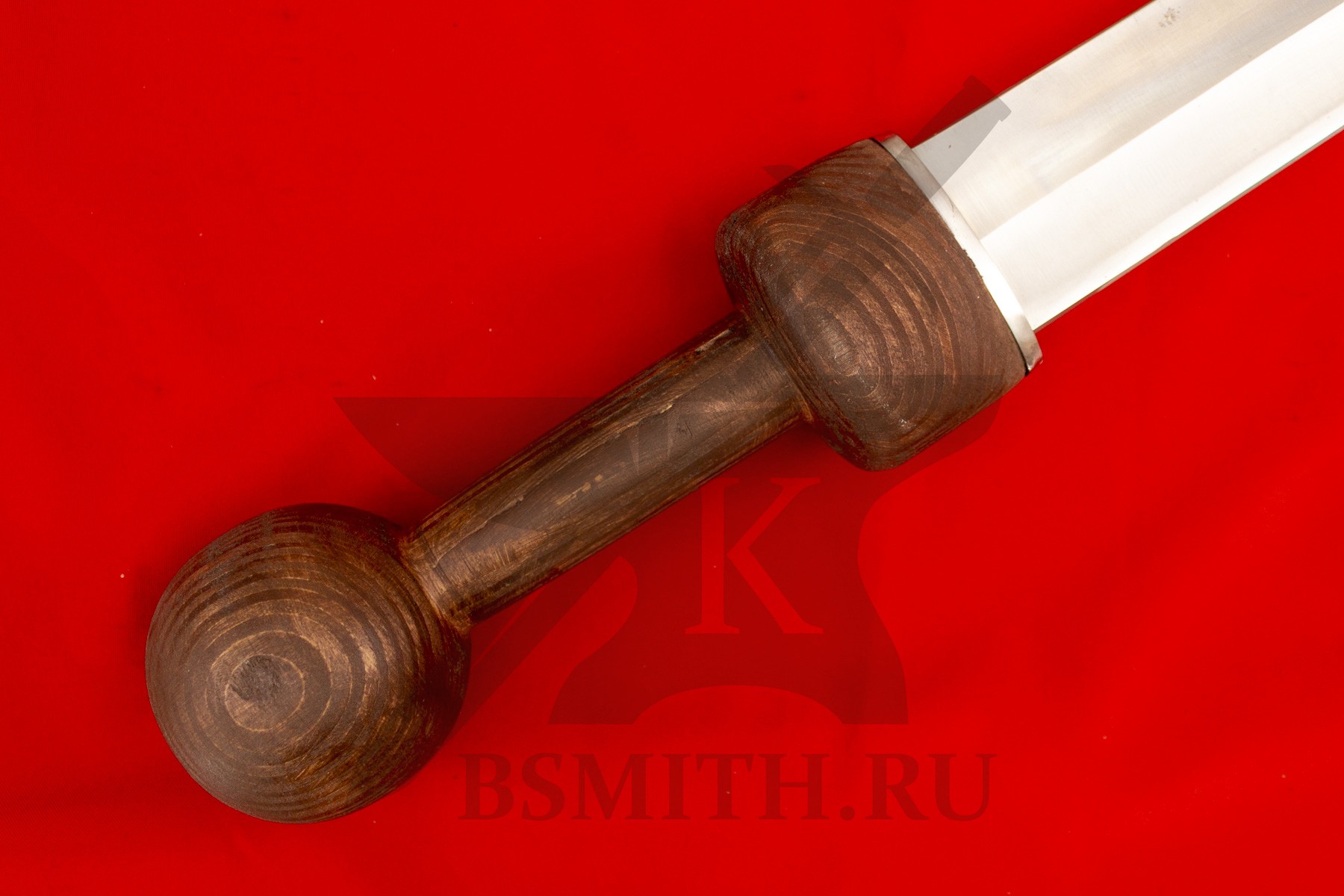 Клинок сделан из высокоуглеродистой легированной стали 65Г, с закалкой около 50 HRC, шлифовка. Клинок затуплен (отличие от холодного оружия), ослаблений никаких нет. Набор на эфес гладиуса (навершие, гарда, рукоять) деревянный.