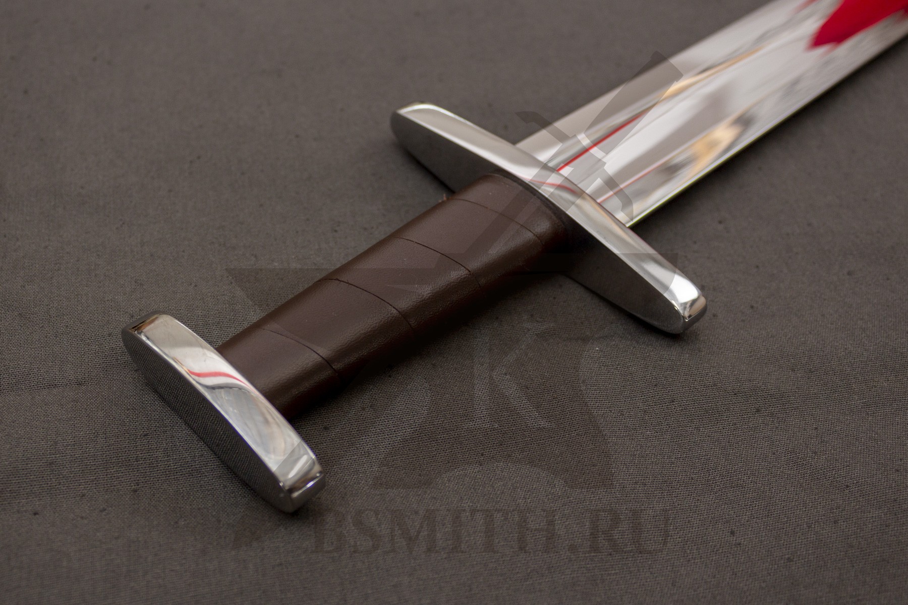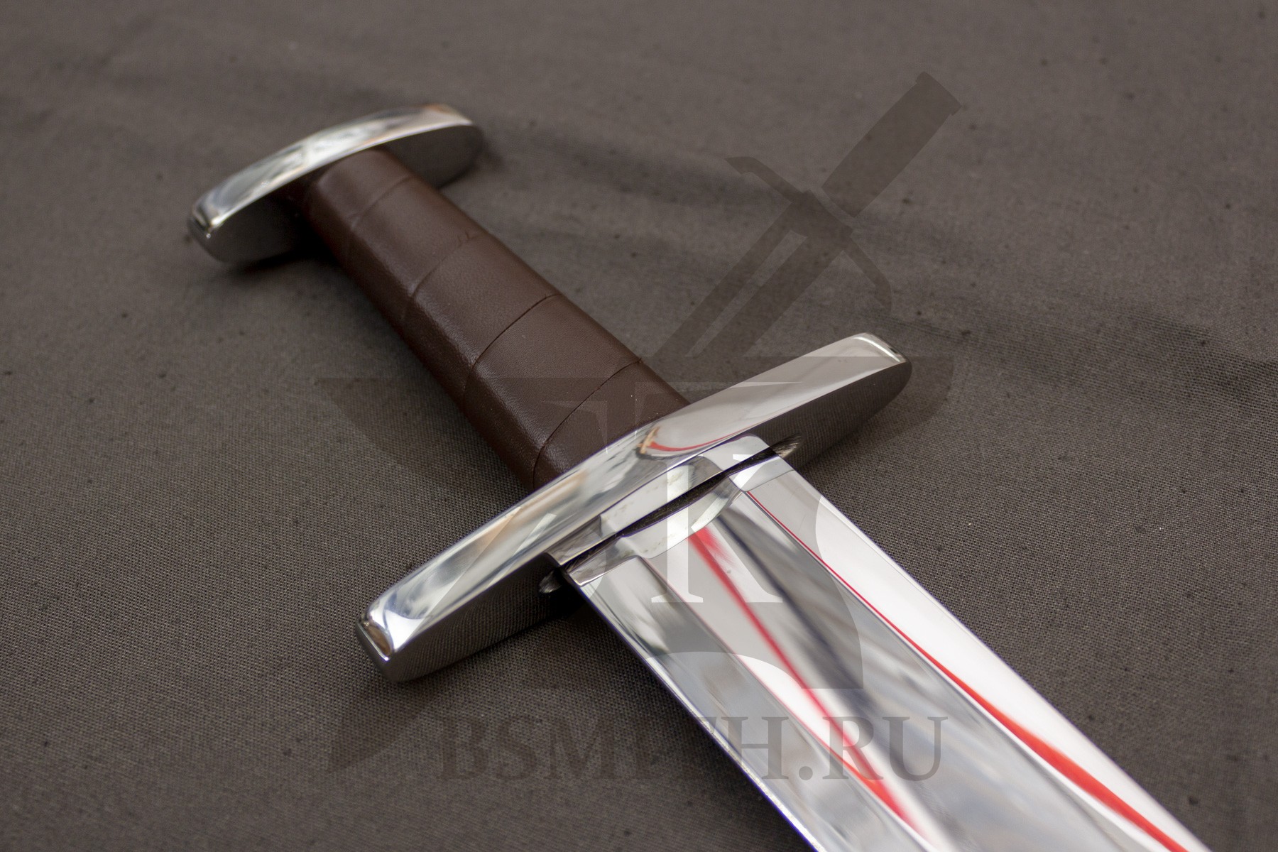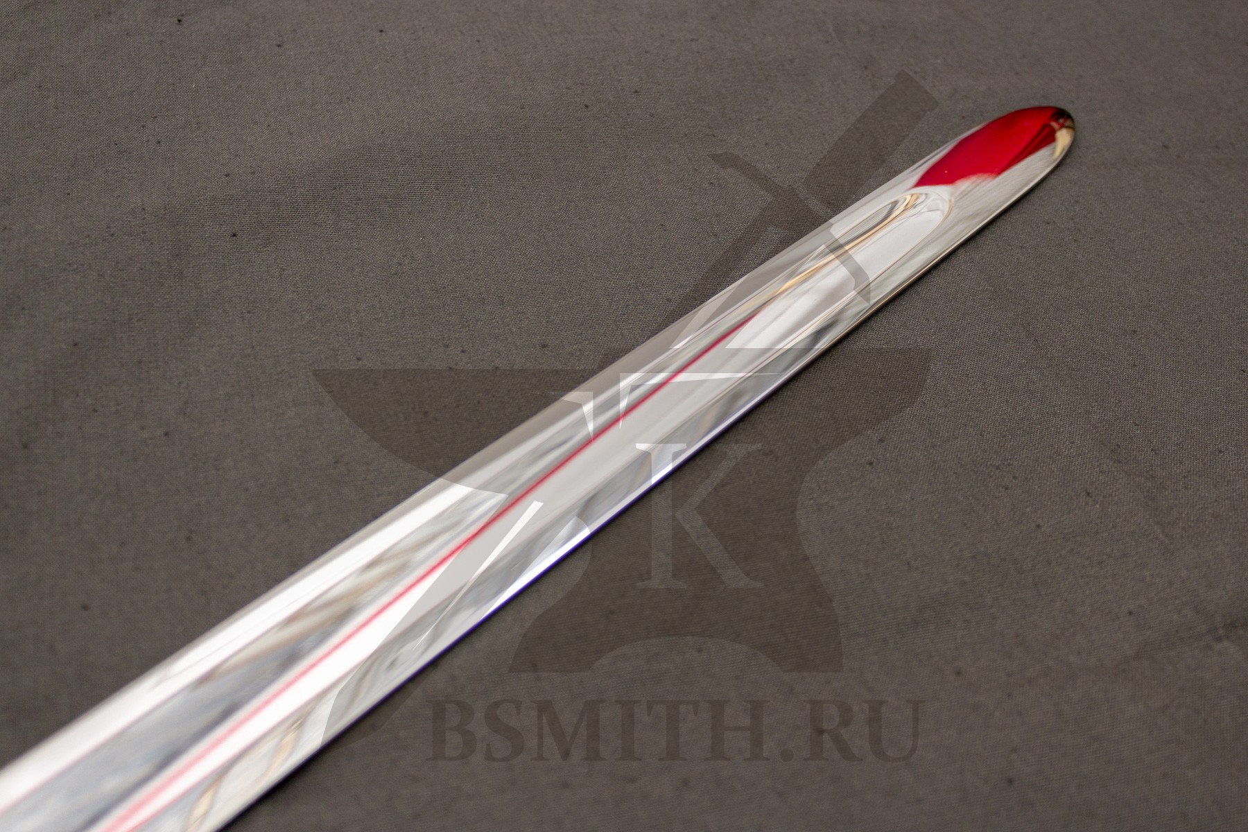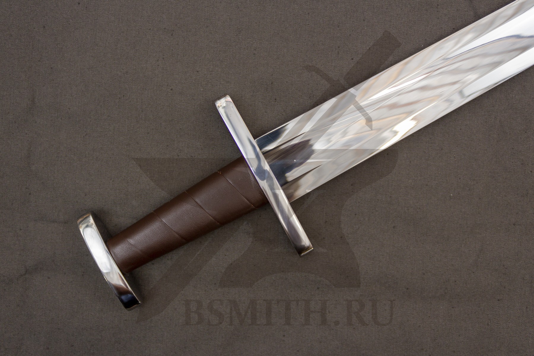 Клинок сделан из высокоуглеродистой легированной стали 65Г, с закалкой около 50 HRC, полированный. Клинок затуплен (отличие от холодного оружия), ослаблений никаких нет. Набор на эфес (навершие, гарда) стальной. Рукоять меча обмотана кожей.
