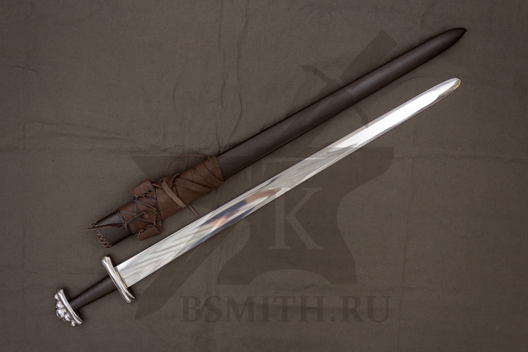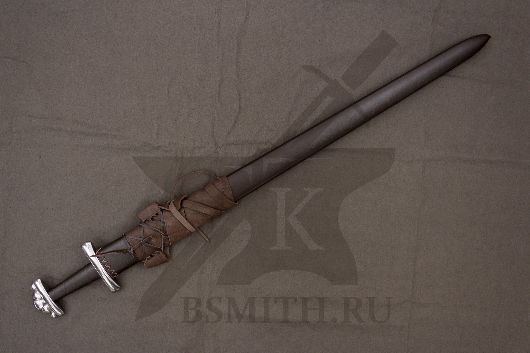 Ножны - дерево, обтянуты натуральной кожей, сложная поясная портупея. Ножны входят в стоимость меча.