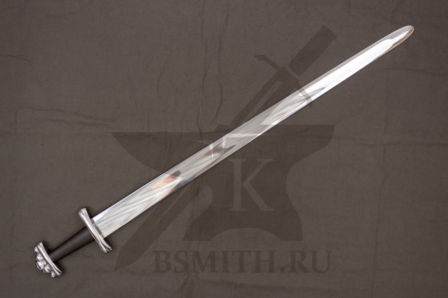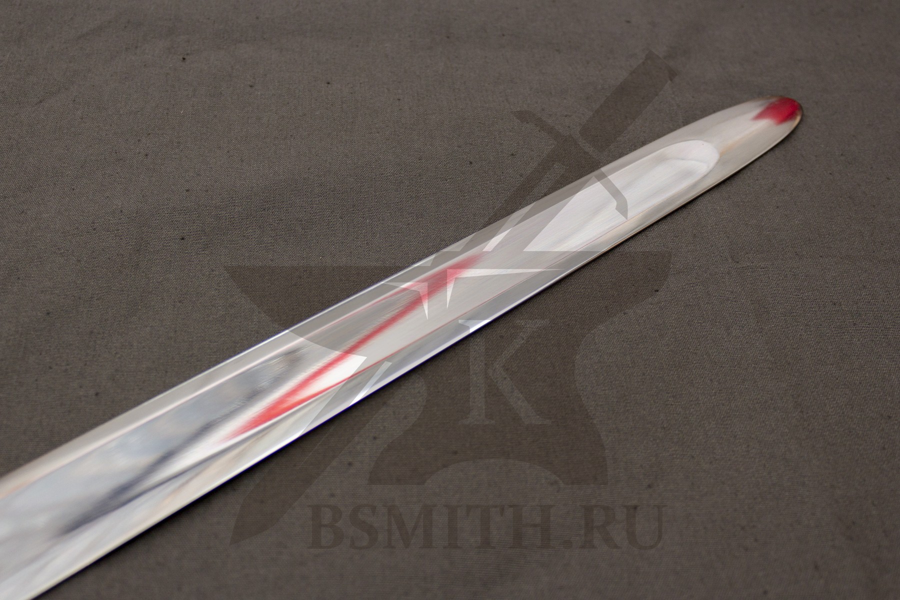 Клинок сделан из высокоуглеродистой легированной стали 65Г, с закалкой около 50 HRC, полированный. Клинок затуплен (отличие от холодного оружия), ослаблений никаких нет. Набор на эфес (навершие, гарда) стальной. Рукоять меча обмотана кожей.