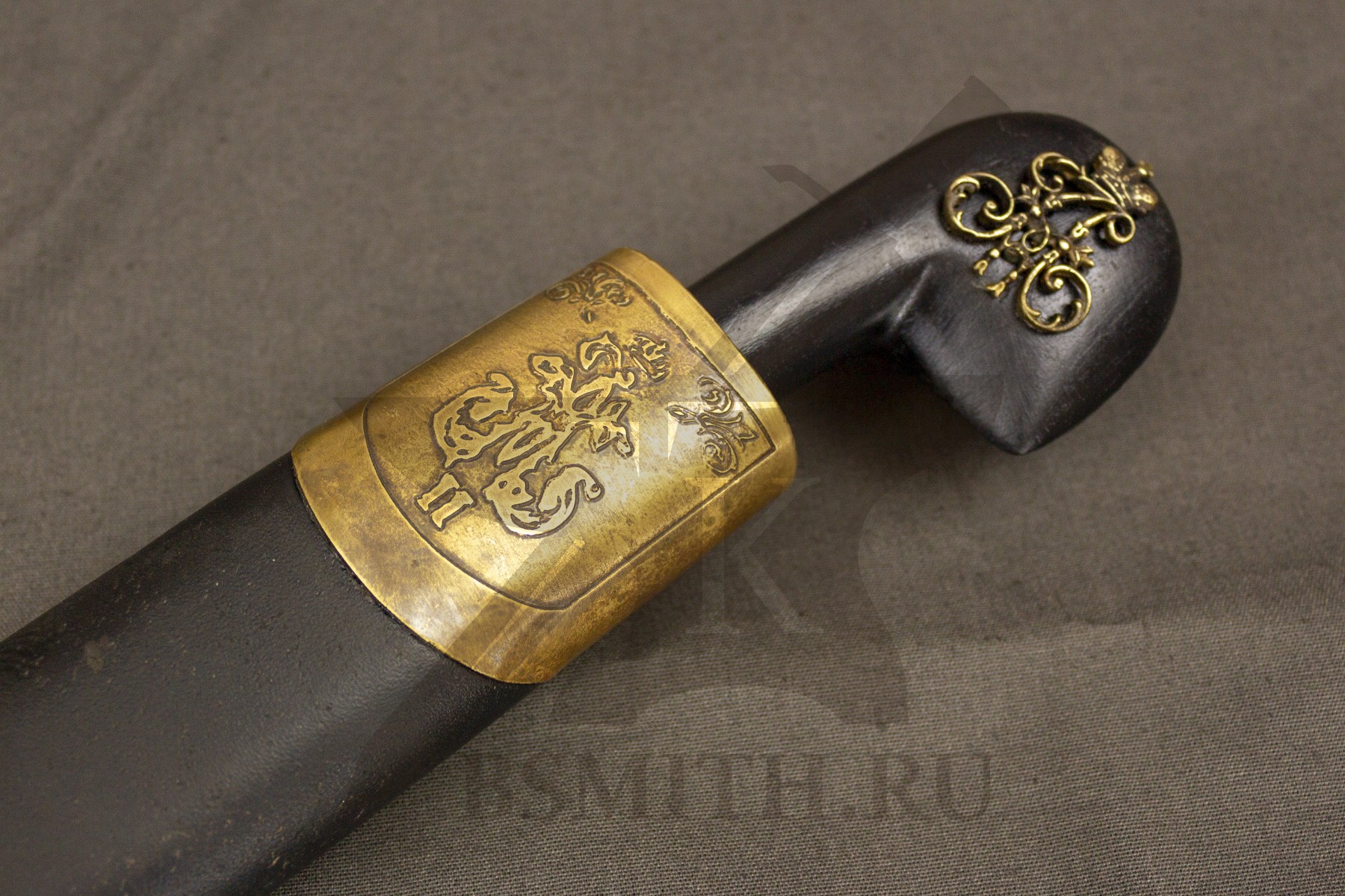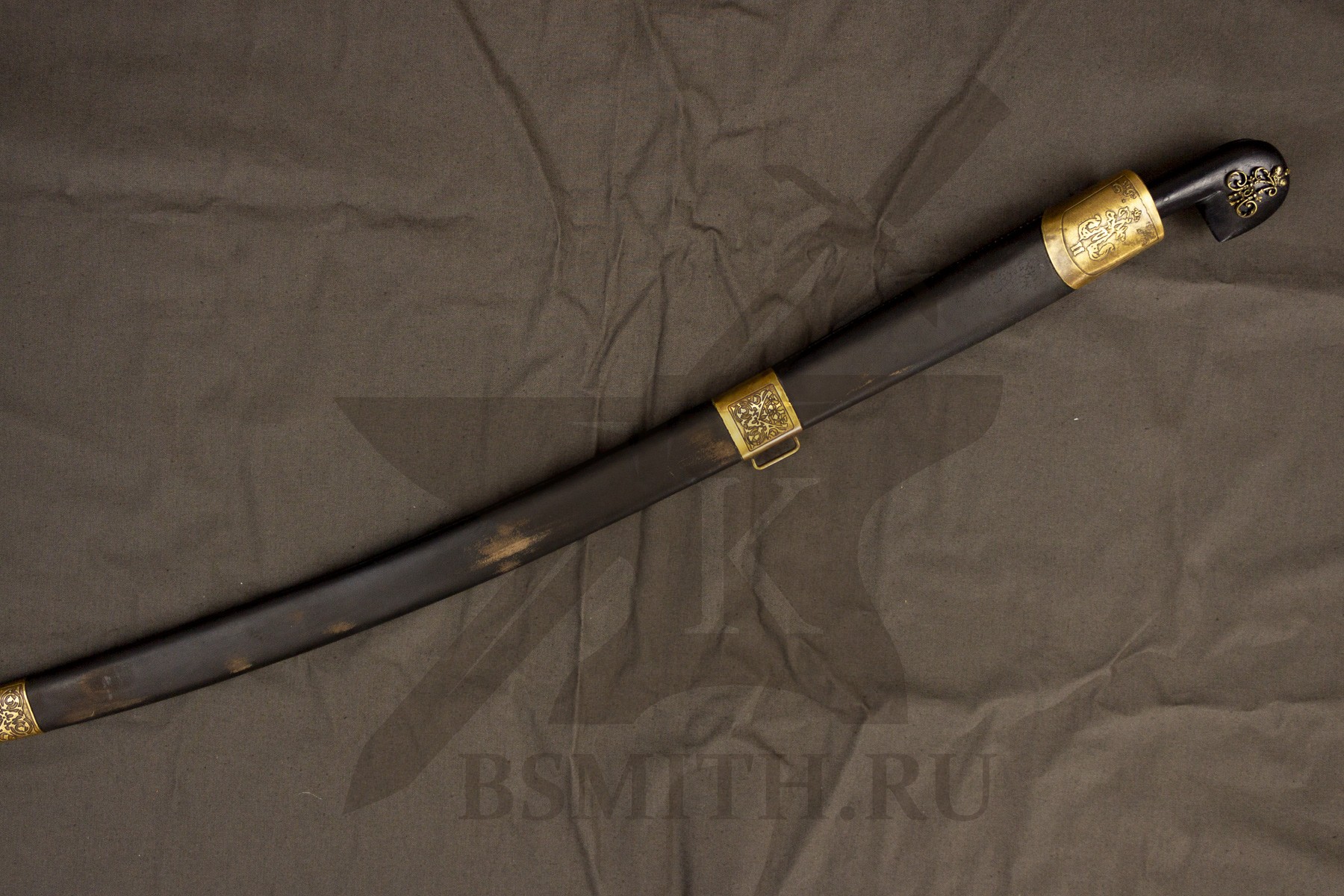 Ножны - дерево, обтянуты натуральной кожей, латунный гарнитур. Ножны входят в стоимость шашки.