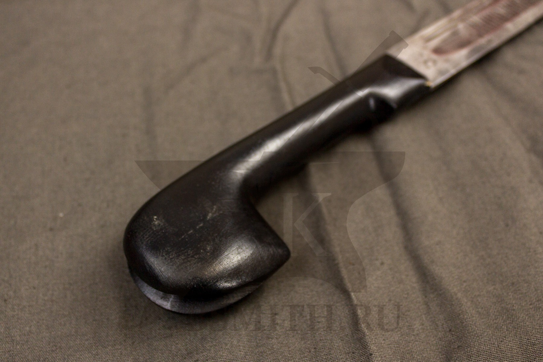Клинок сделан из высокоуглеродистой легированной стали 60С2А, с закалкой около 45-50 HRC. Клинок затуплен (отличие от холодного оружия), ослаблений никаких нет.