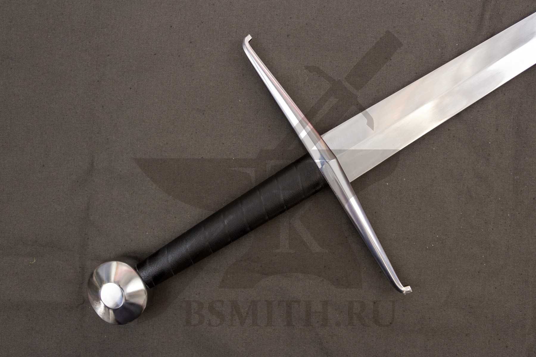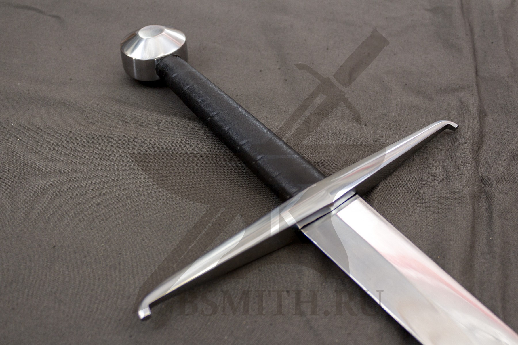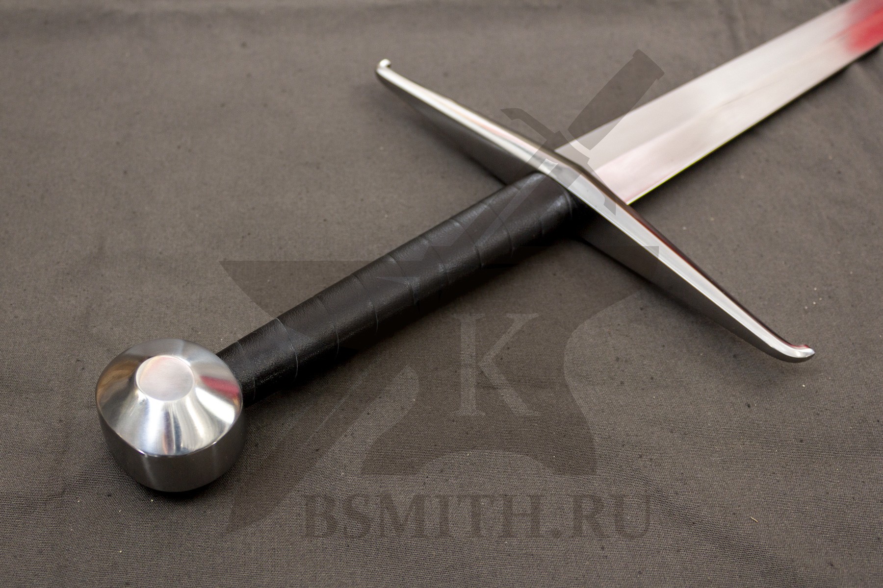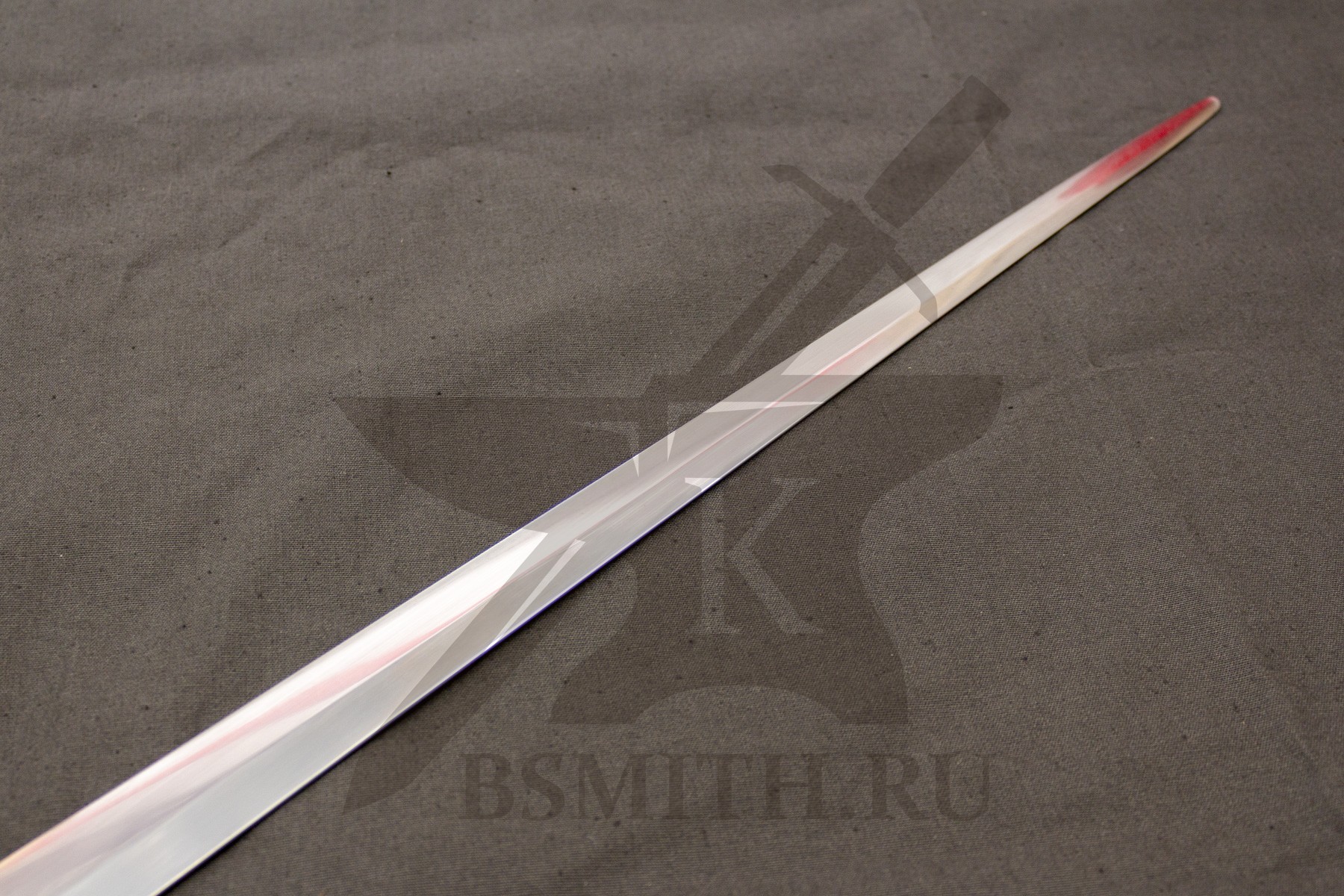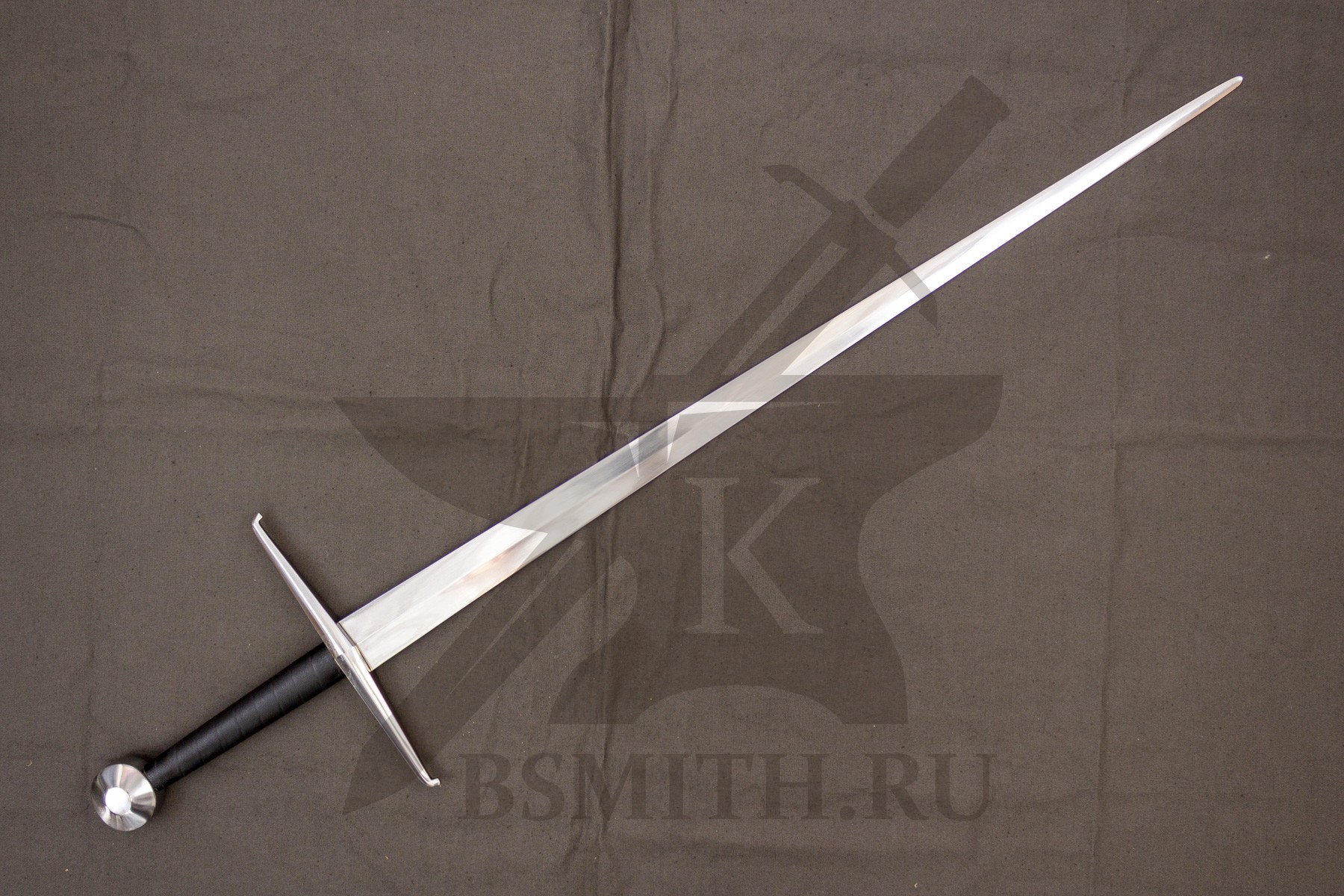 Клинок сделан из высокоуглеродистой легированной стали 65Г, с закалкой около 50 HRC, полированный. Клинок затуплен (отличие от холодного оружия), ослаблений никаких нет. Набор на эфес (навершие, гарда) стальной. Рукоять меча обмотана кожей.