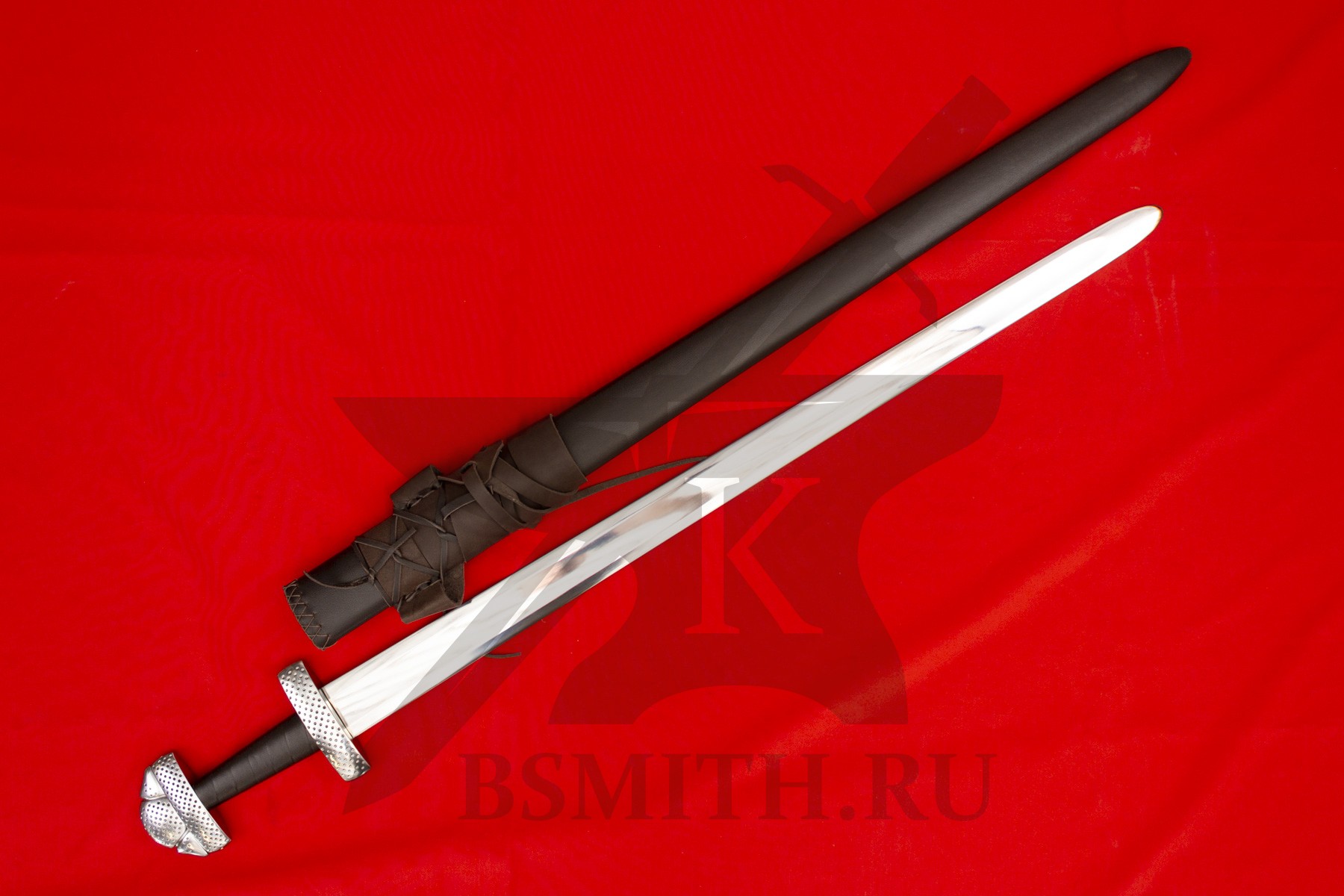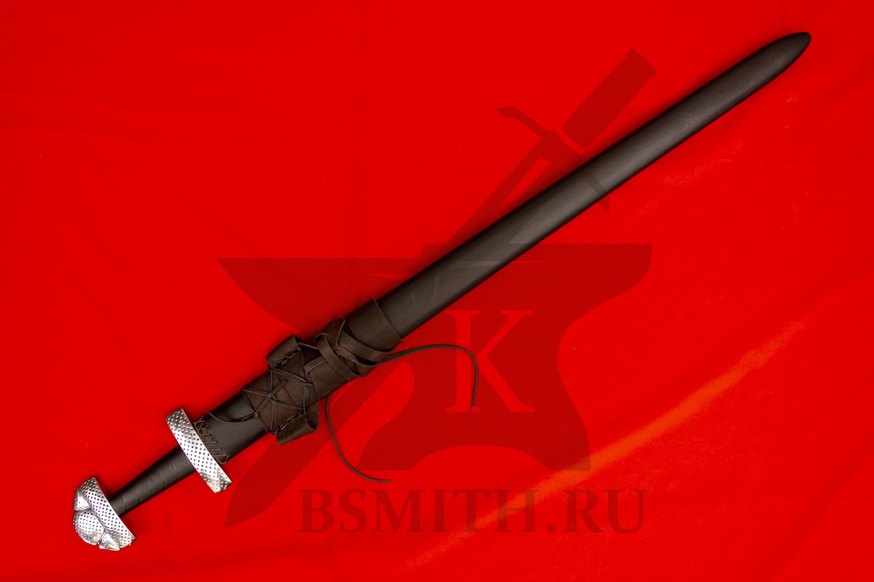 Ножны - дерево, обтянуты натуральной кожей, сложная поясная портупея. Ножны входят в стоимость меча.