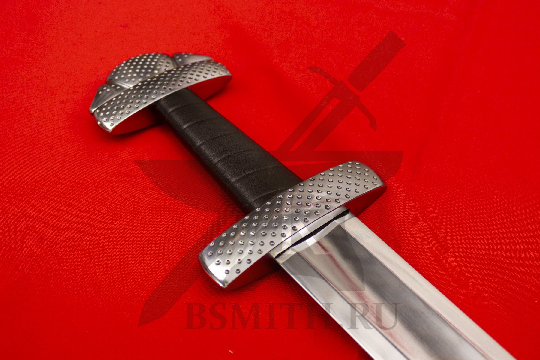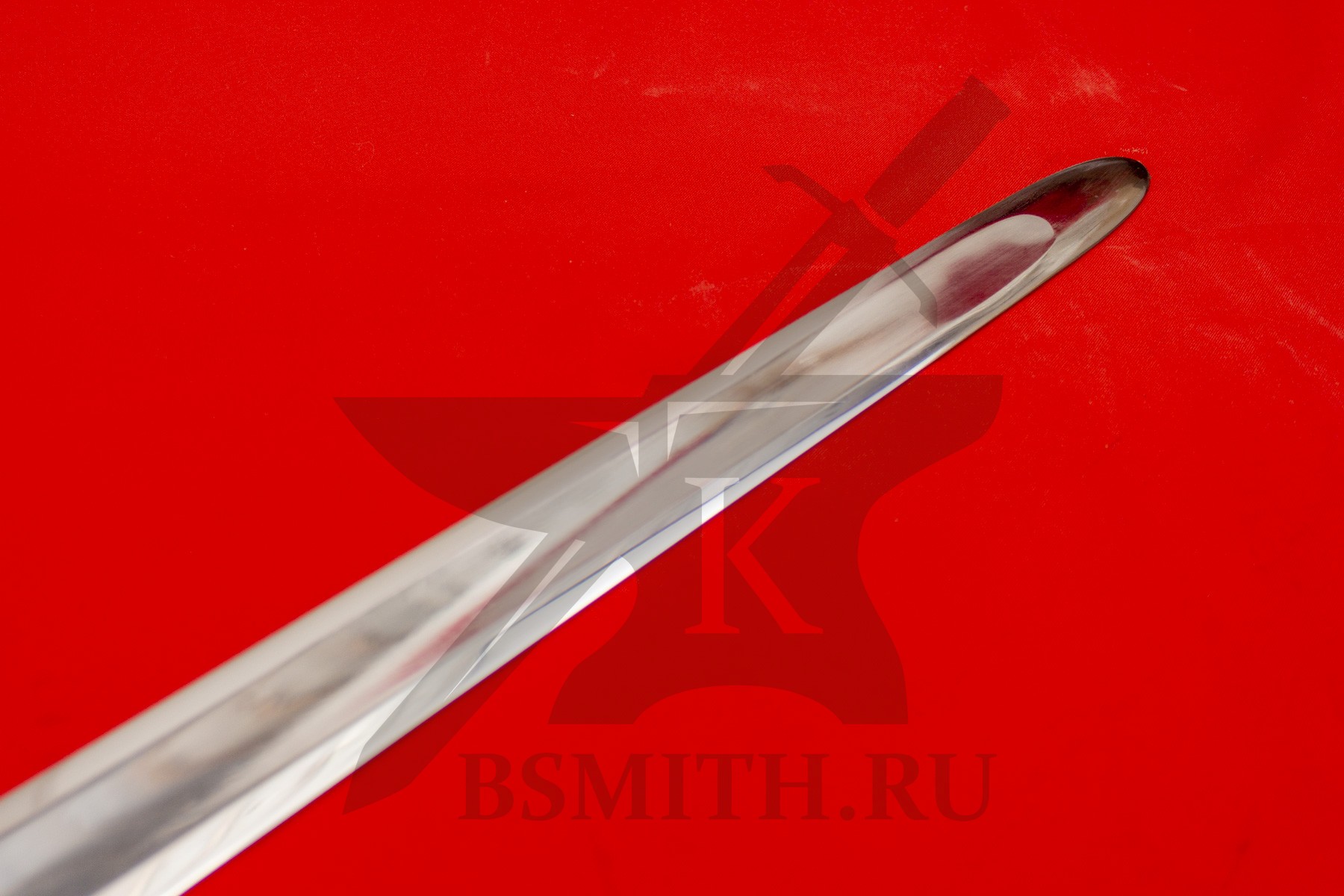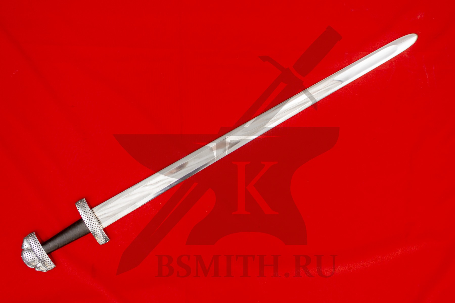 Клинок сделан из высокоуглеродистой легированной стали 65Г, с закалкой около 50 HRC, полированный. Клинок затуплен (отличие от холодного оружия), ослаблений никаких нет. Набор на эфес (навершие, гарда) стальной. Рукоять меча обмотана кожей.